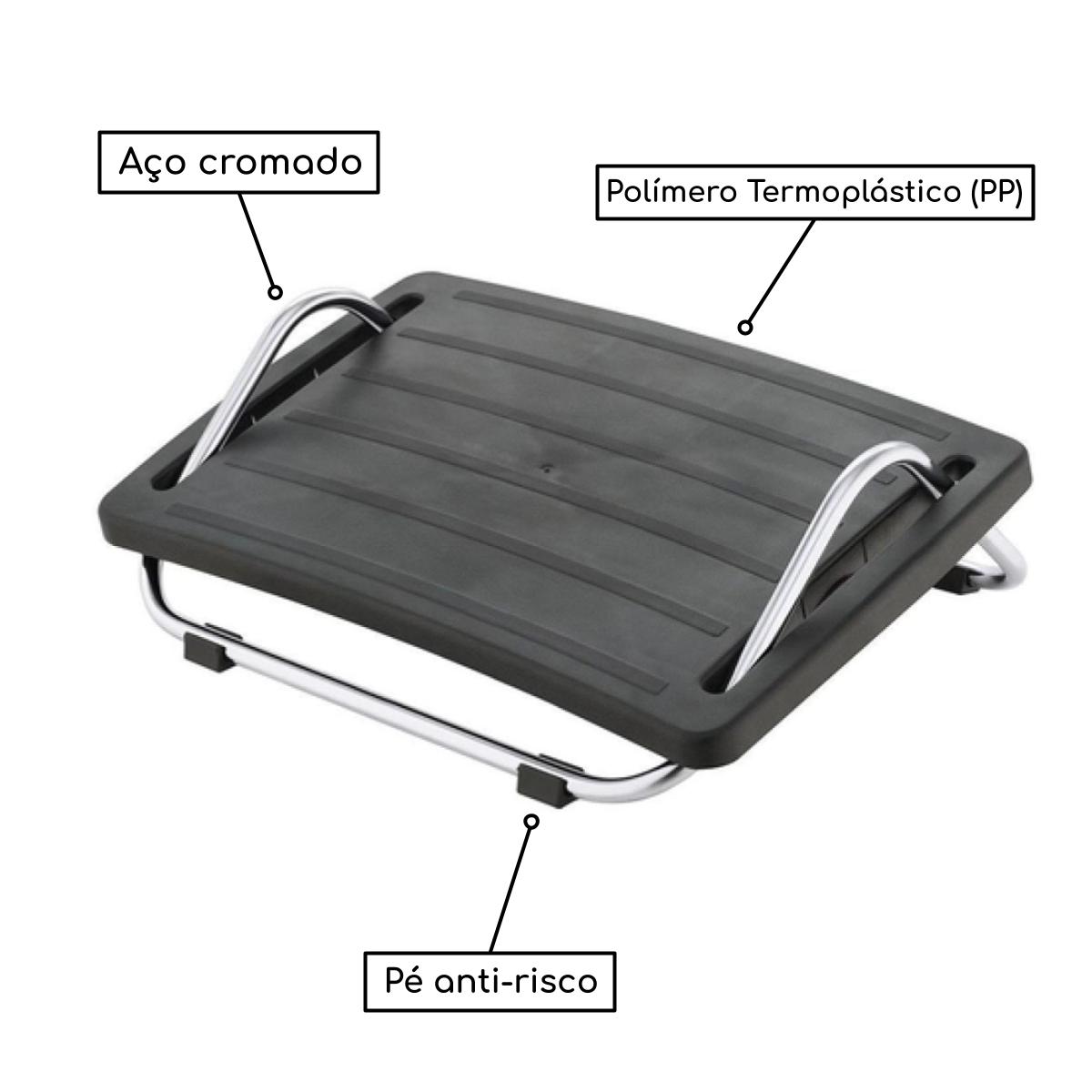 Apoio de pé injetado em ABS de alto impacto, com textura antiderrapante, estrutura injetada altamente resistente, base com acabamento emborrachado antideslizante.