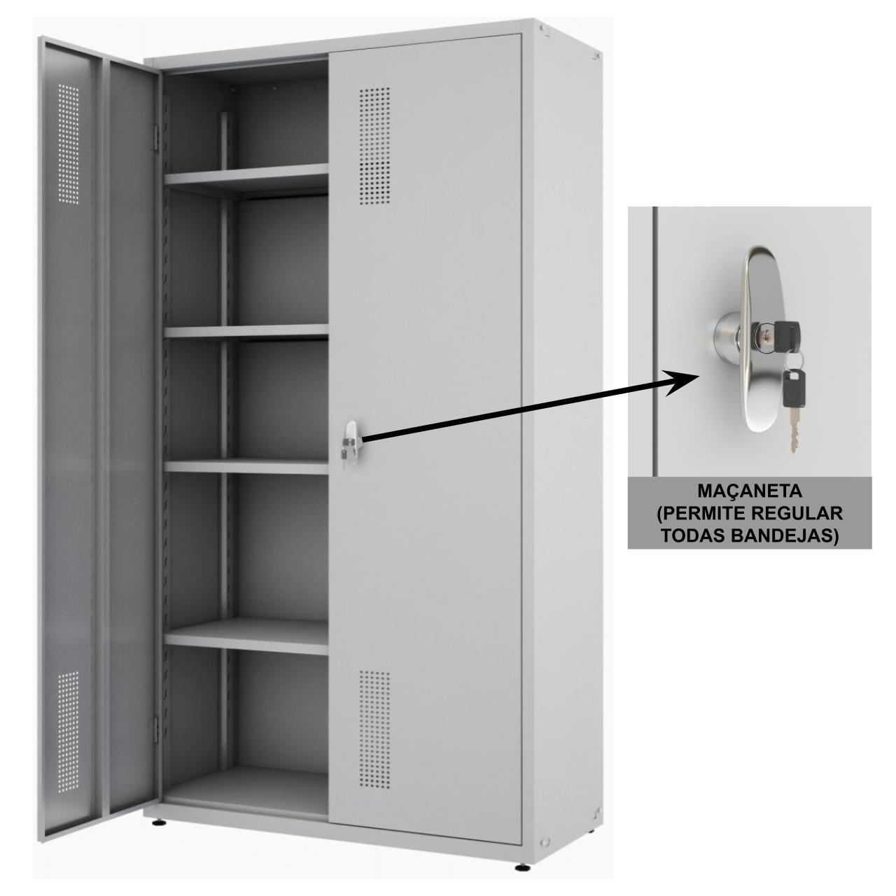 Armário de Aço POP c/ Portas e Maçaneta – PA 120 – CHAPA LEVE – 1,98×1,20×0,40m – W3 – CZ/CZ – 17006