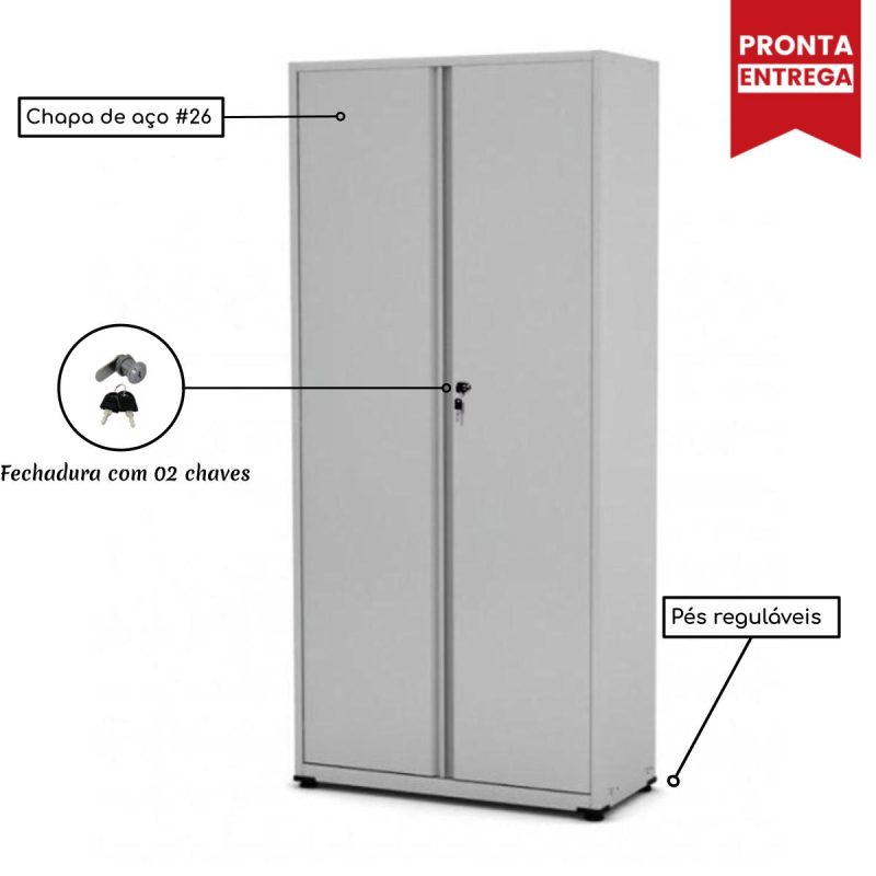 Armário de Aço PA-80 – 1,92×0,80×0,40m – CHAPA # 26 – PANDIN – CZ/CZ – 12002 .