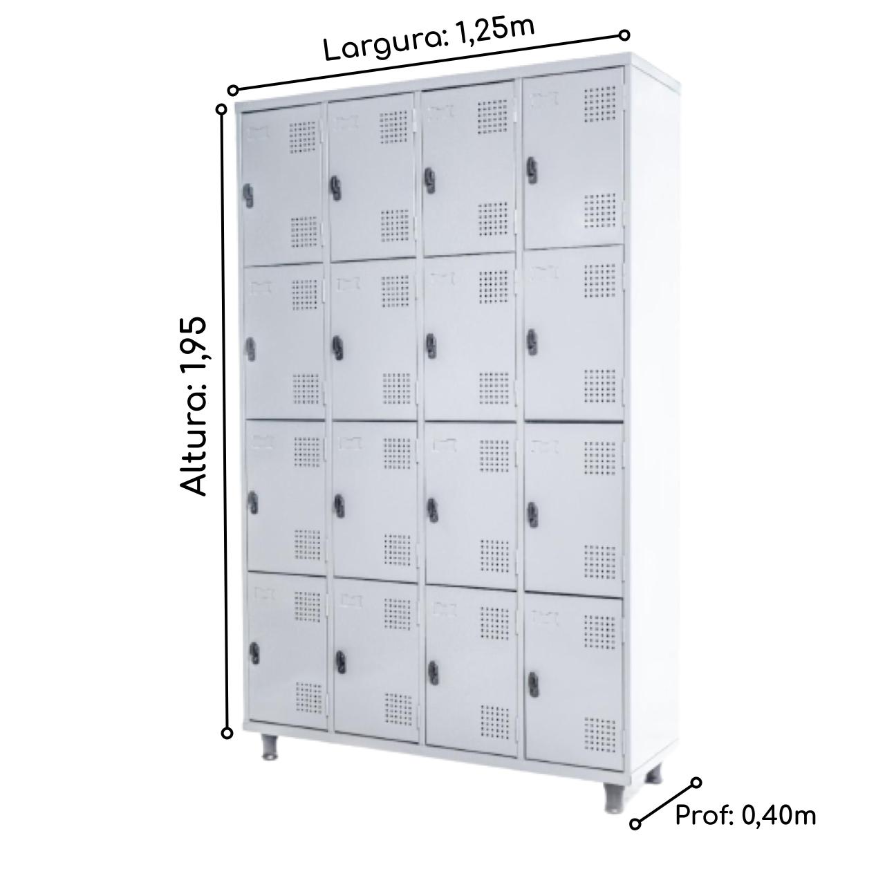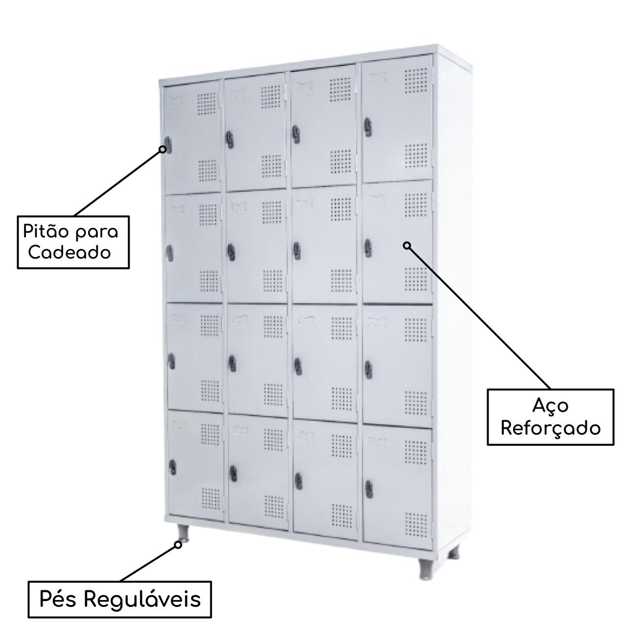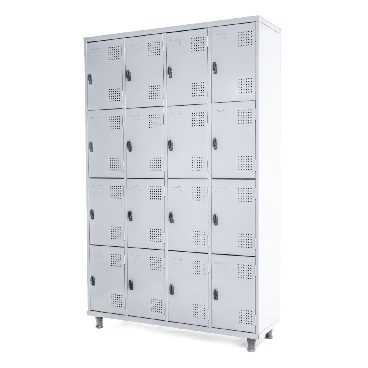 Estrutura: Roupeiro de Aço reforçado, 16 Portas pequenas cinza – Armário para vestiário
