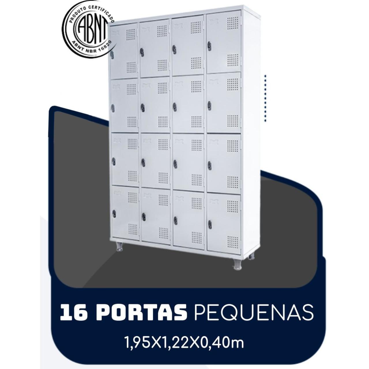 Armário Roupeiro de Aço c/ 16 Portas PEQUENAS – 1,95×1,25×0,40m – SA – CZ/CZ – 14000