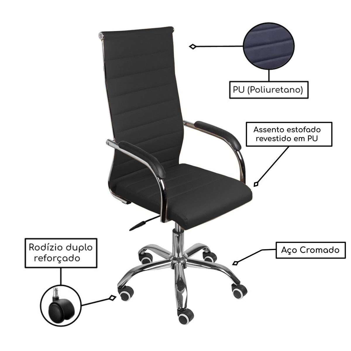 Descrição Técnica da Cadeira de Escritório Presidente