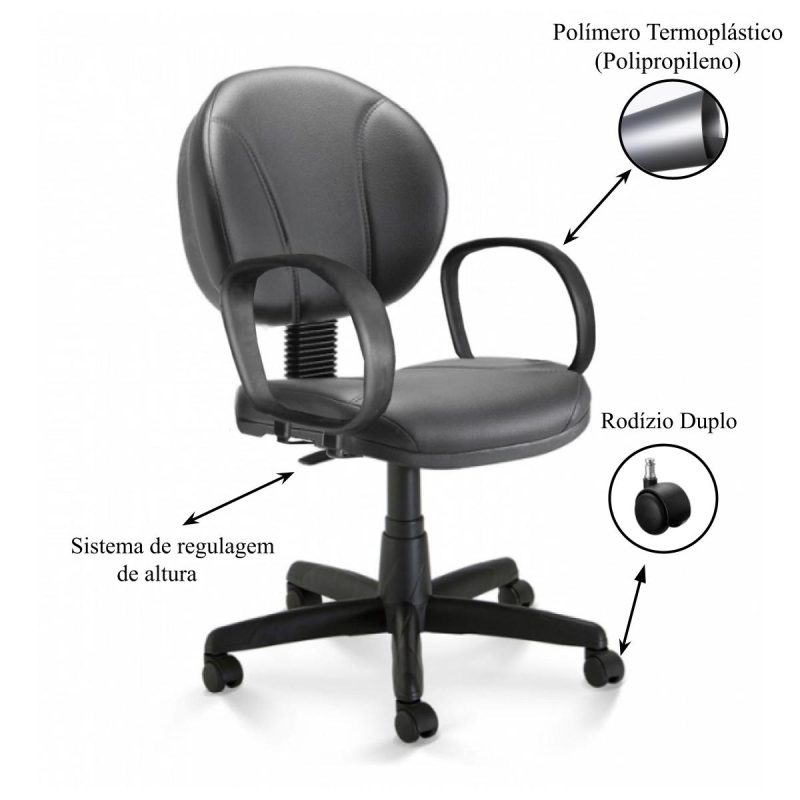 Produto: Cadeira Executiva PLUS COSTURADA c/ Braço Corsa – CORINO – COR PRETO – 32978