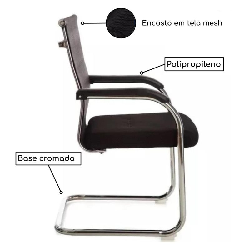 Cadeira Interlocutor Tela DUBAI (Fixa) base Cromada – PMD – Cor Preto – 31018