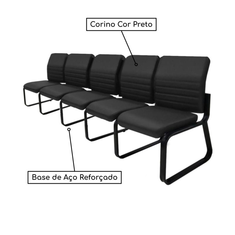 Cadeira Longarina 05 Lugares ESTOFADA – LYON – Cor Preto – 33123