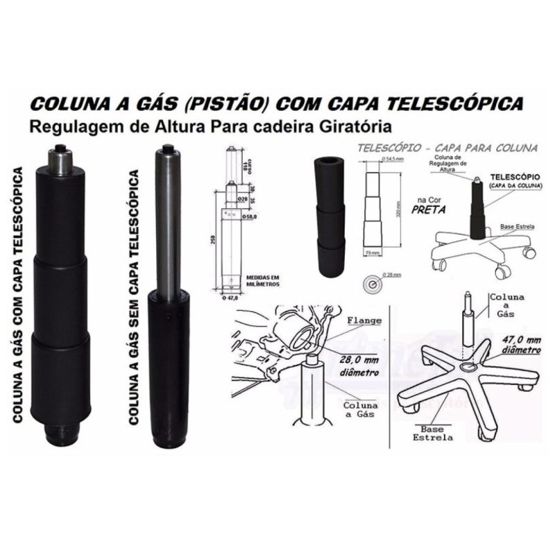 Outros Recursos / Mais informações: Assento Revestido / 05 Rodízios Duplos / Contra Capa Plástica / Telescópio 03 Estágios