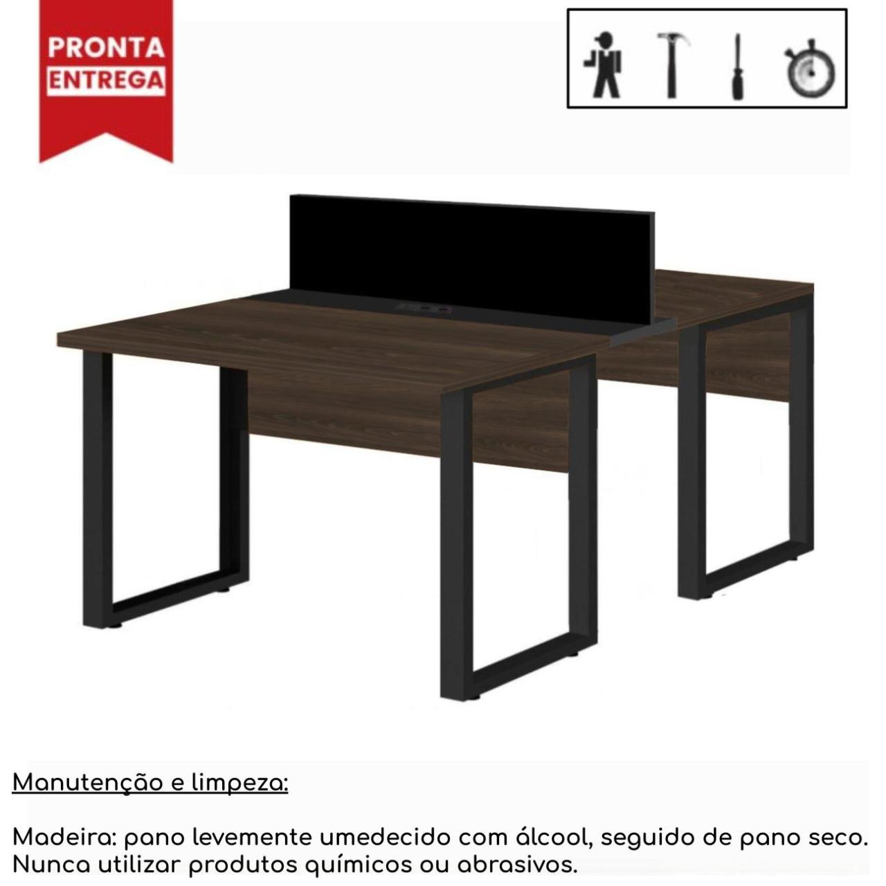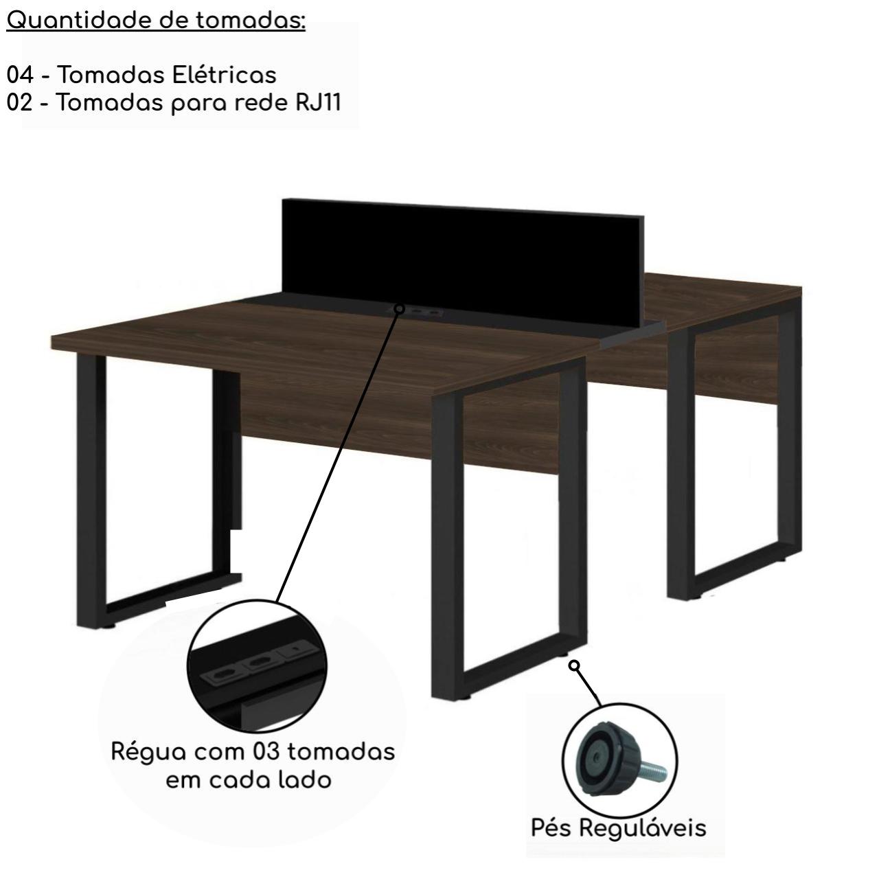 Estação de Trabalho Dupla 1,20×1,35m 02 Lugares c/ Gavetas c/ ponto de tomada MARSALA/PRETO – 64001