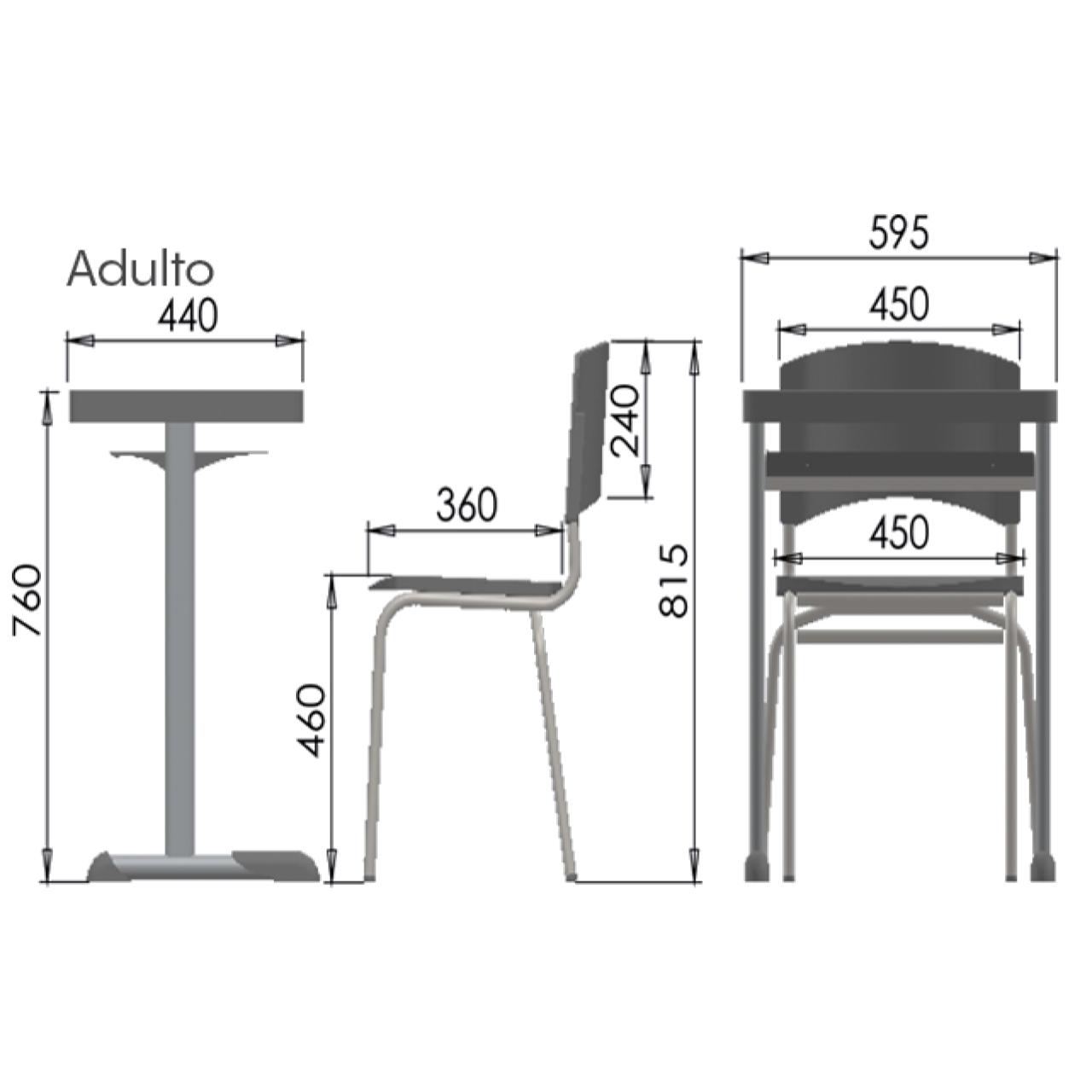 Mais Informações: Assento e encosto em polímero termoplástico (polipropileno), Estrutura de aço, Plástico não tóxico, Plástico 100% sustentável, Porta Copos, Porta Livros.