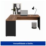 Mesa Escritório em L 1,70m + Mesa Auxiliar S/ Gavetas Nogal Sevilha/Preto 21478