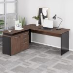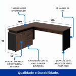 Mesa Escritório em “L” – 1,50×1,50m – com Armário Misto (03 Gav.) MARSALA/PRETO – 23482