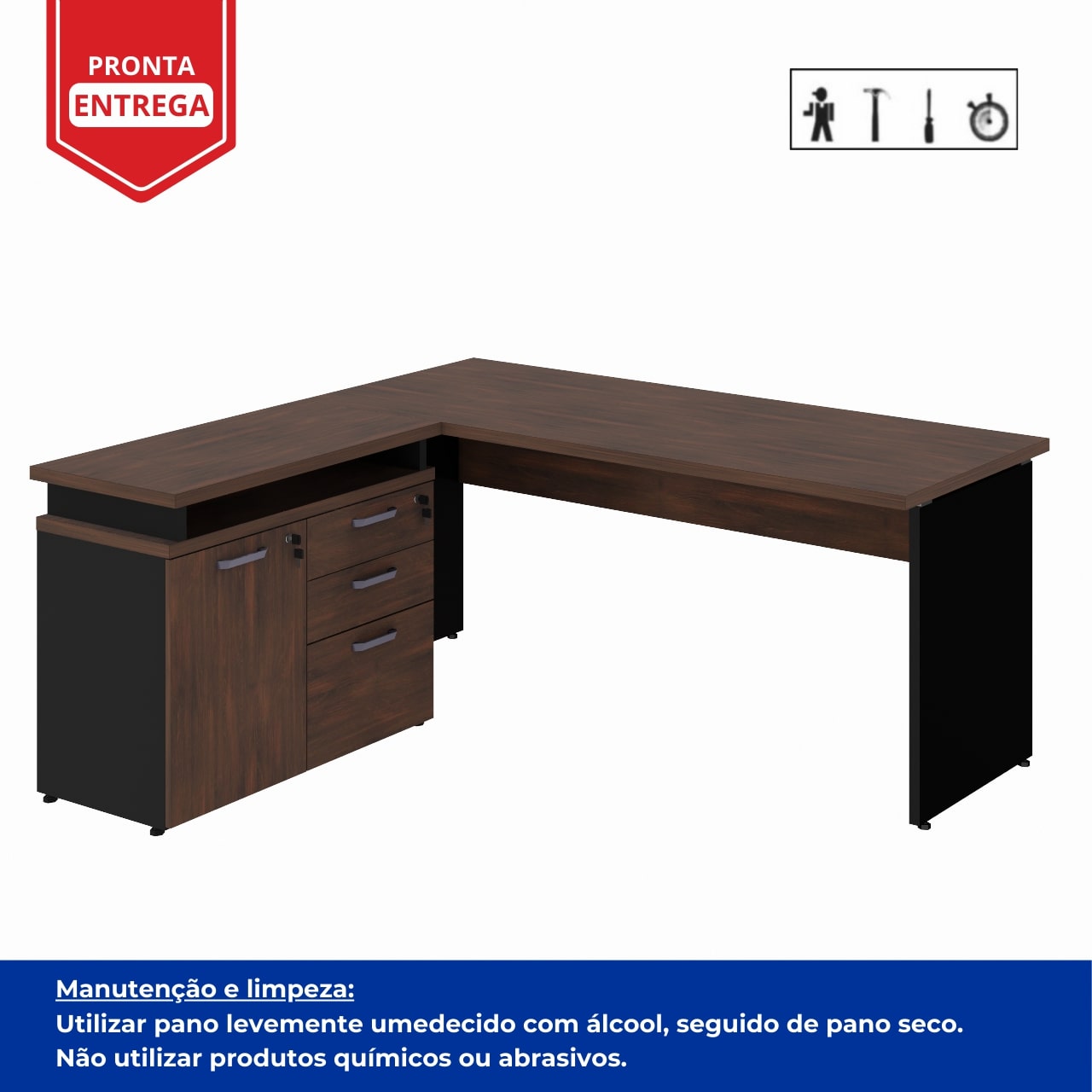 Conteúdo da Embalagem: MESA EM “L” COM ARMÁRIO MISTO