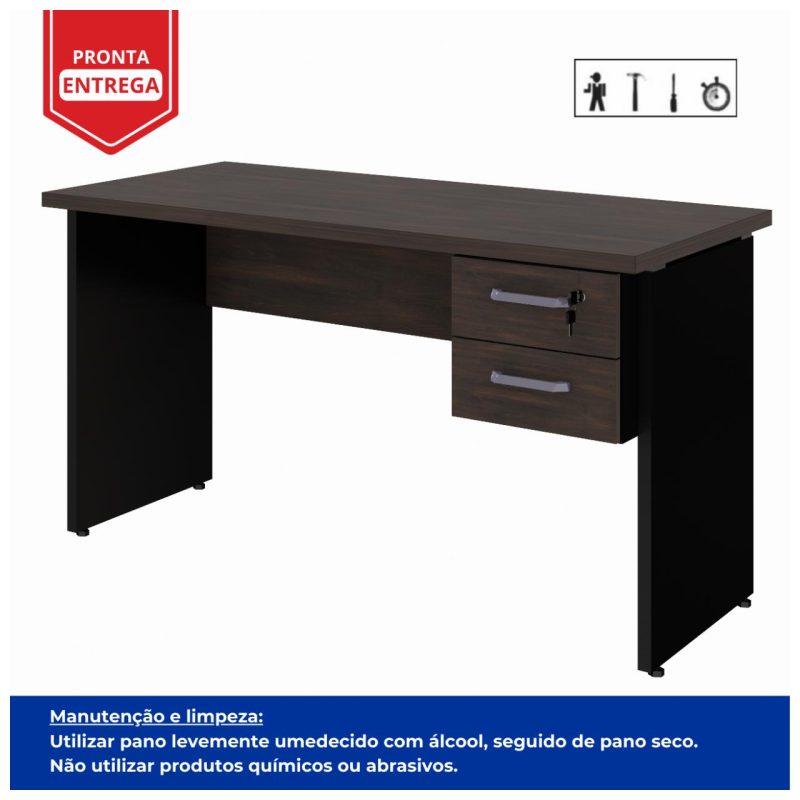 Mesa Escritório PÉ PAINEL – 1,35×0,60m – C/ Gavetas – MARSALA/PRETO – 25421