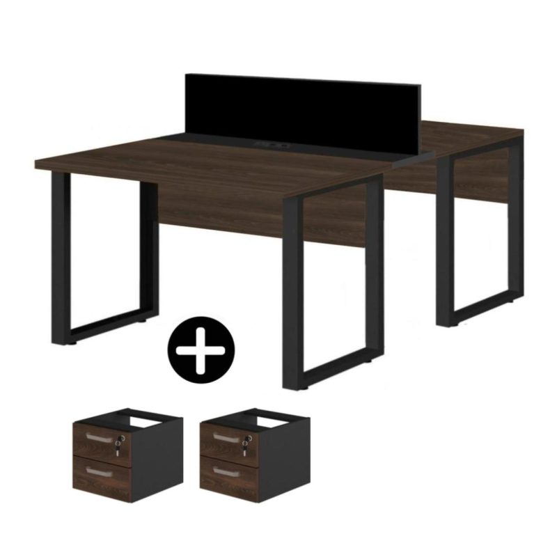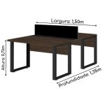Mesa Estação de Trabalho Dupla 1,50×1,35m 2 Lugares c/ Gavetas c/ ponto de tomada PÉ QUADRO MARSALA/PRETO – 64003