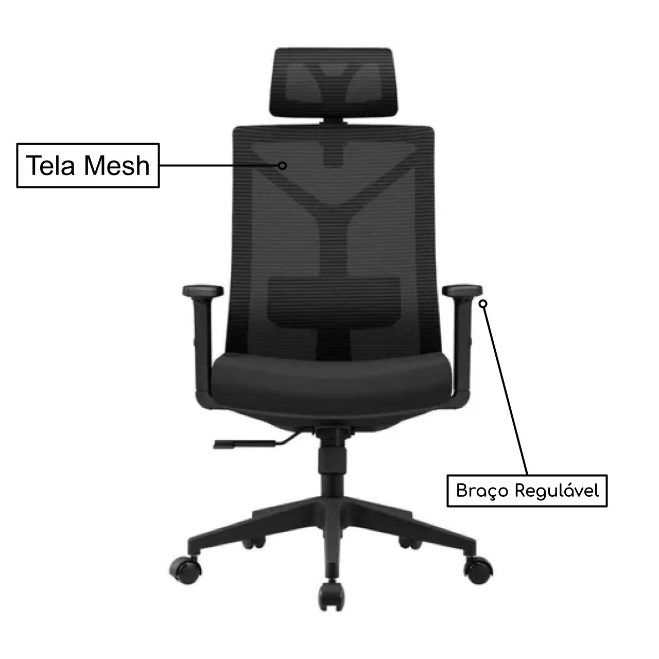Poltrona Presidente TELA ODIN Giratória – Cor Preto – Pollo Móveis – 32870